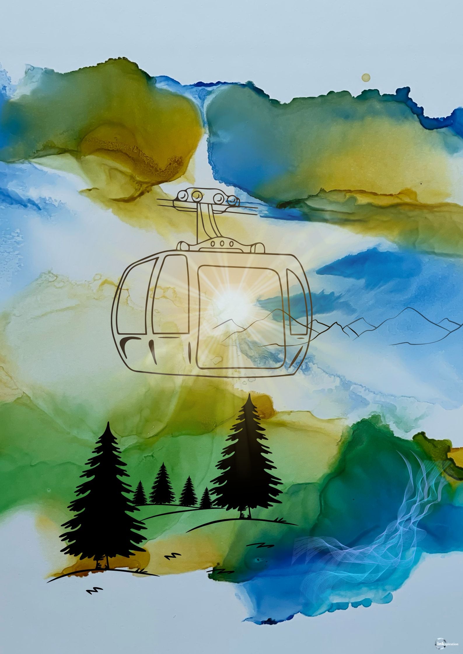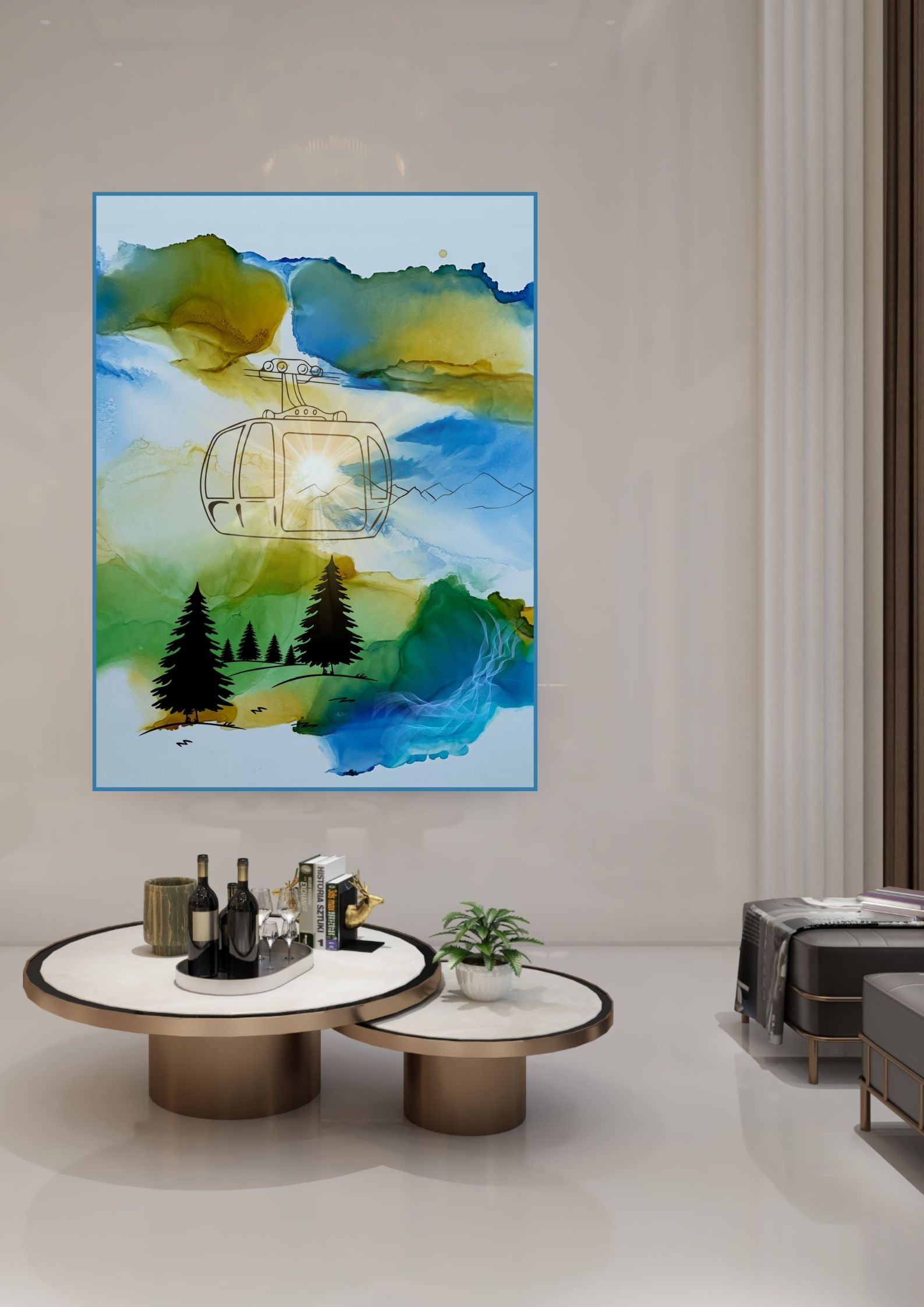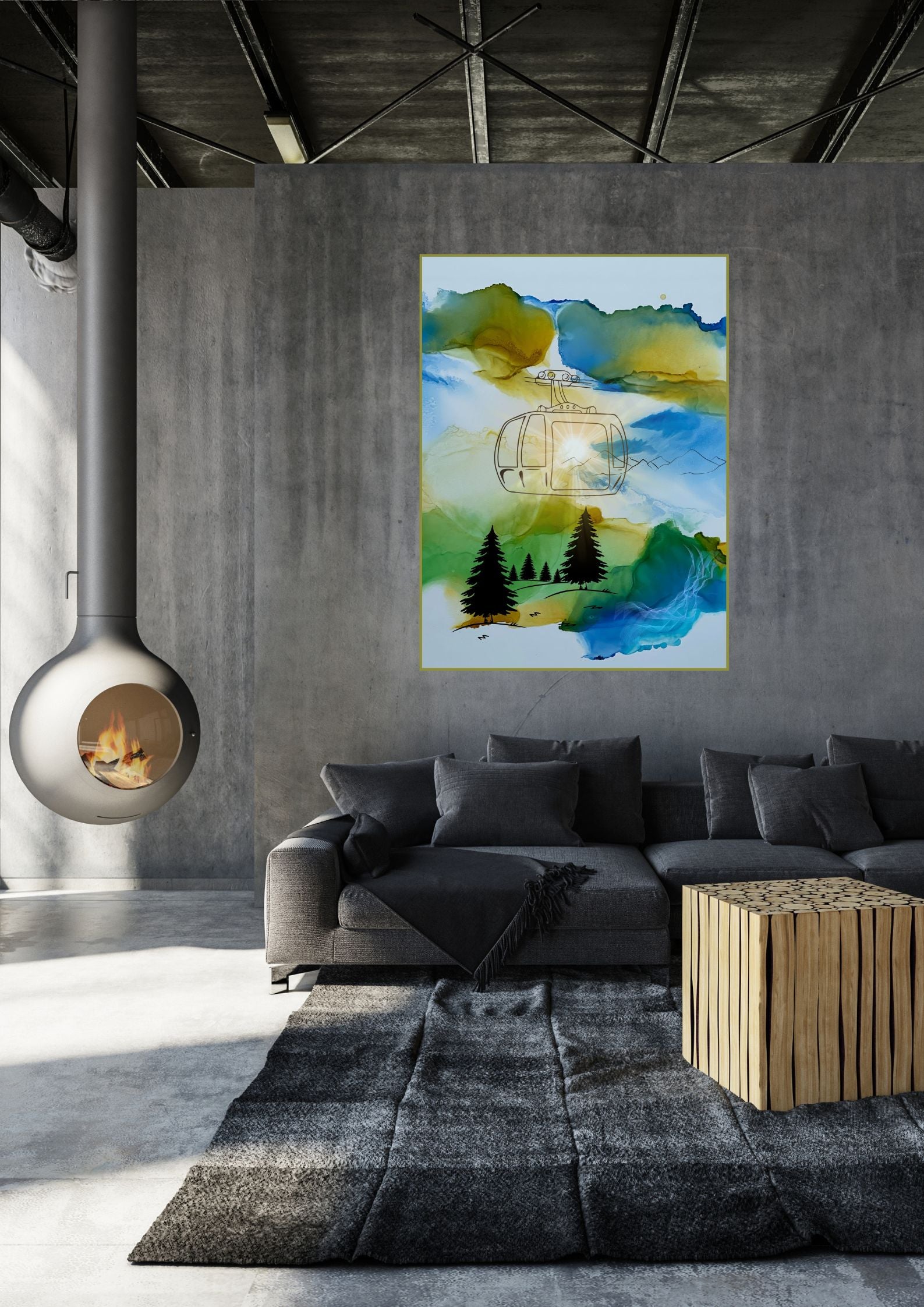 Das Poster mit den Bergen und der Gondel macht dein Zuhause zu etwas Besonderem.
