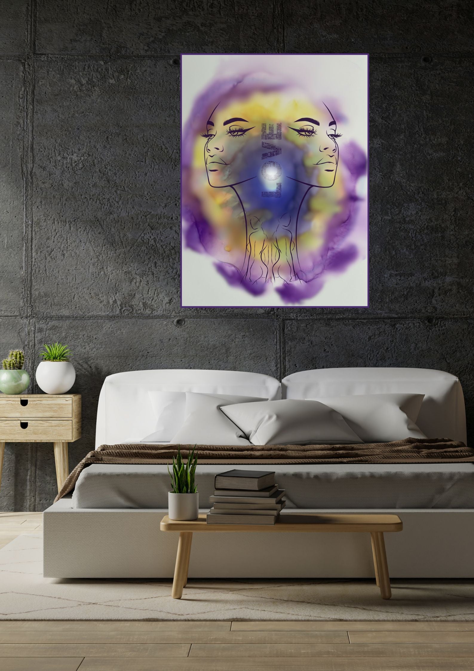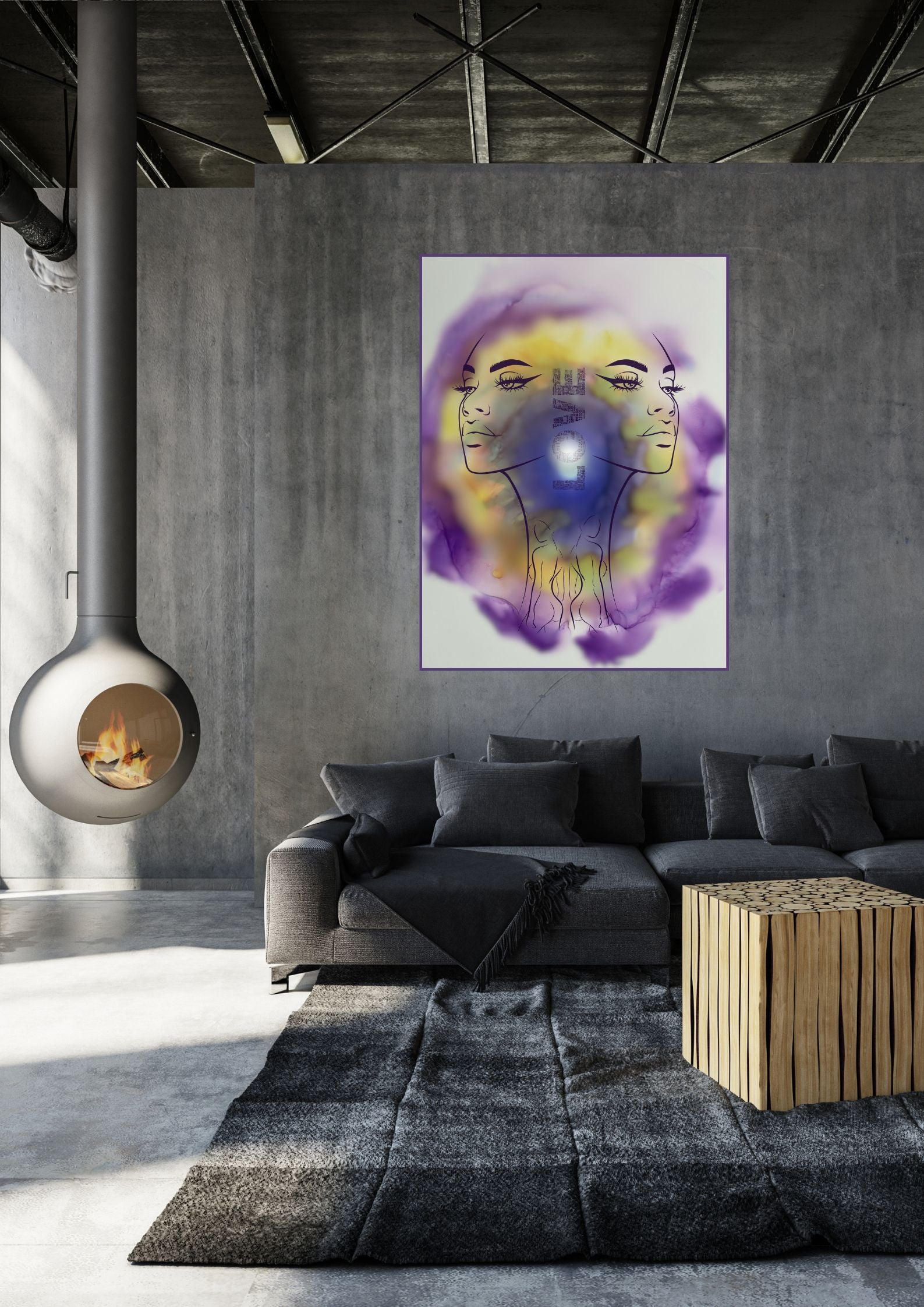 Das Poster ist in den Farben Violett und Gelb gehalten. Es vermittelt Vertrauen und Hoffnung. Die Illustration zeigt zwei weibliche Gesichter, die Stolz ausdrücken.