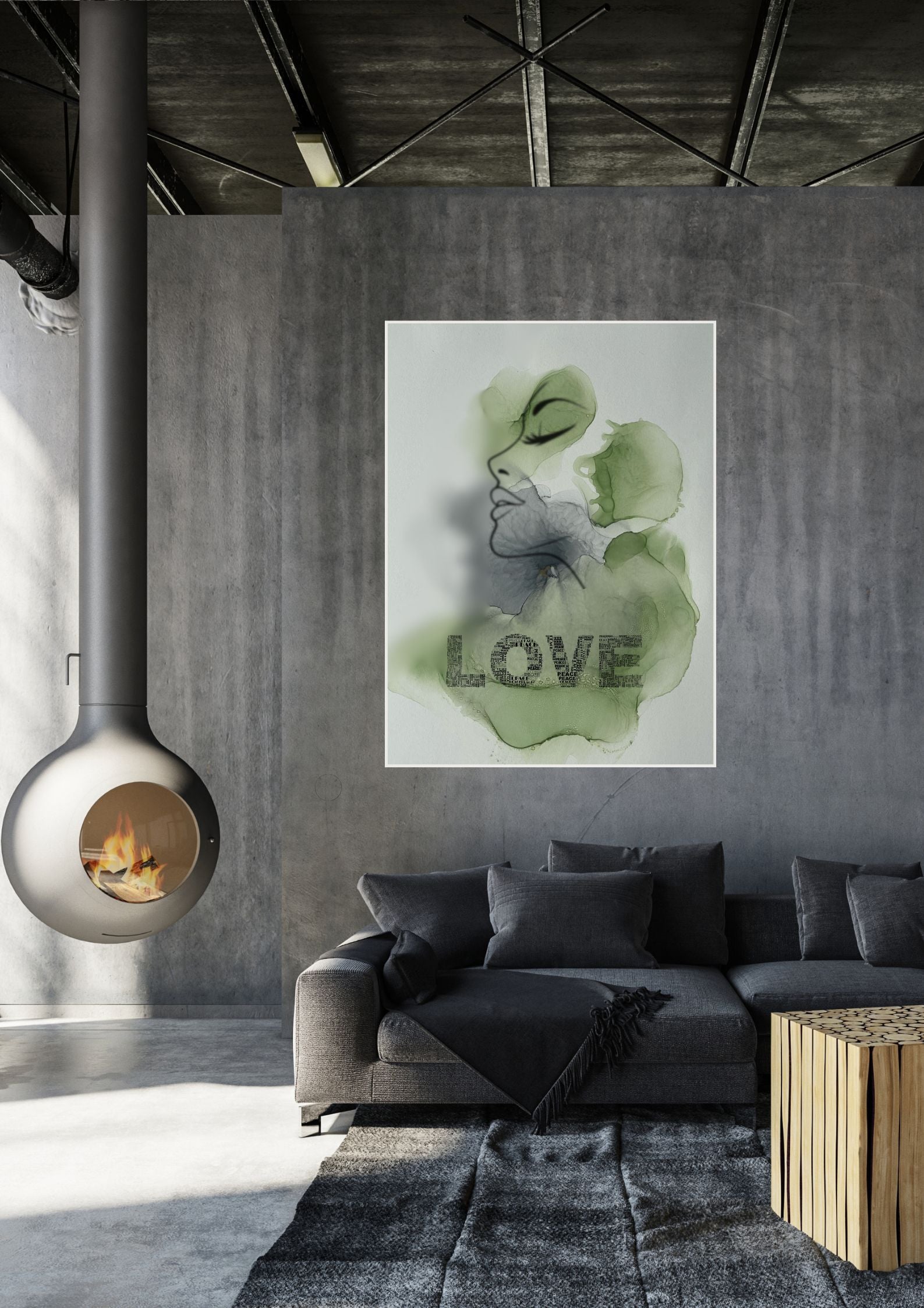 Das Poster mit dem weiblichen Gesicht drückt Sehnsucht nach Liebe und Geborgenheit aus.
