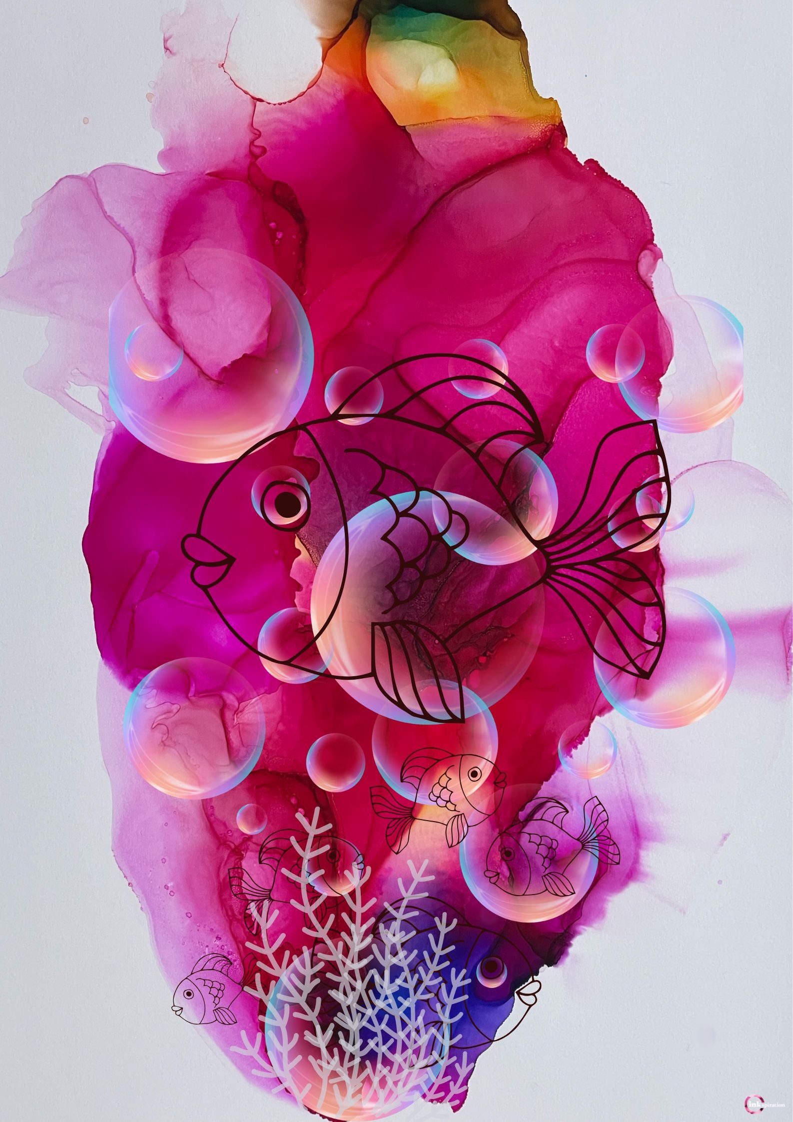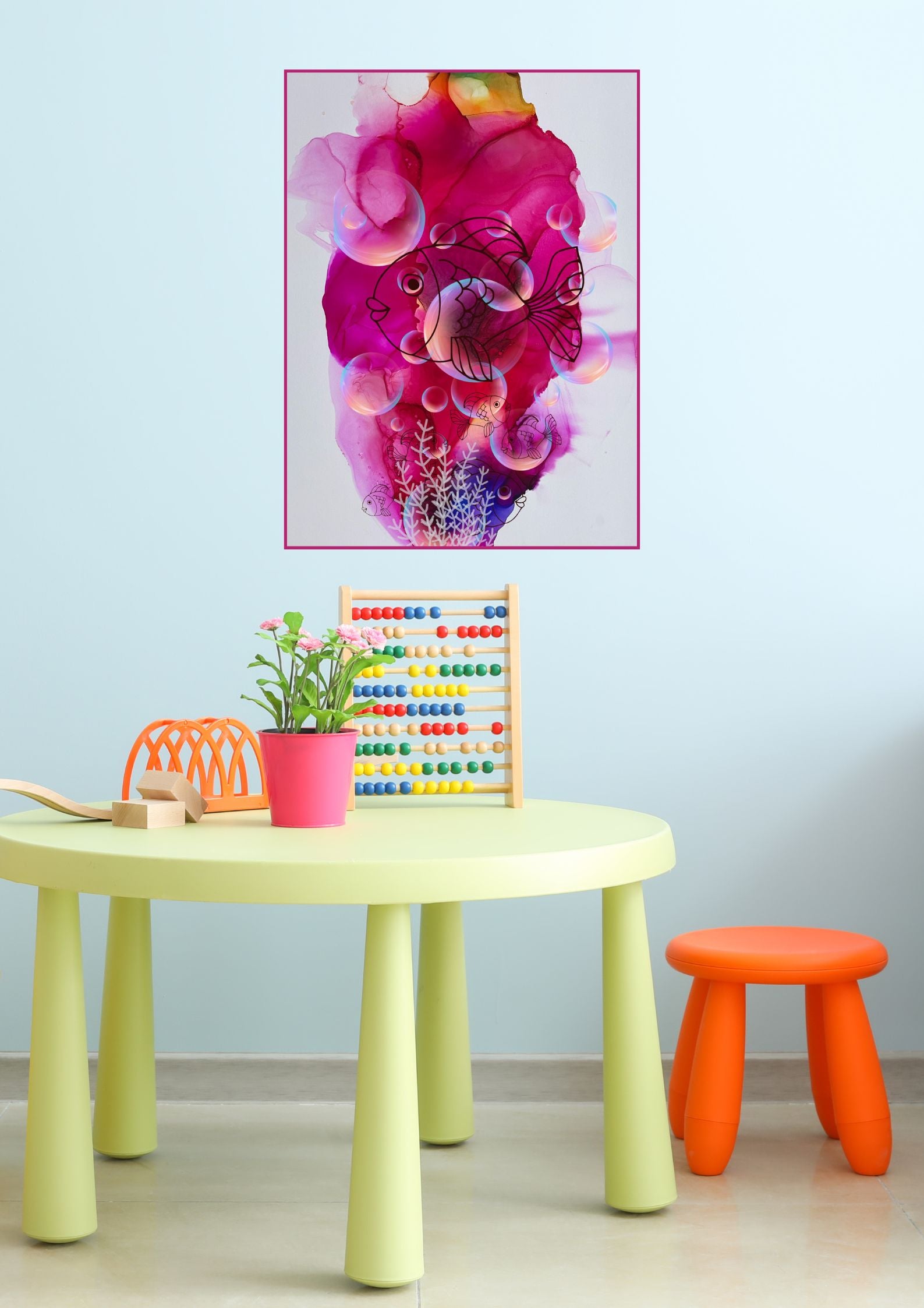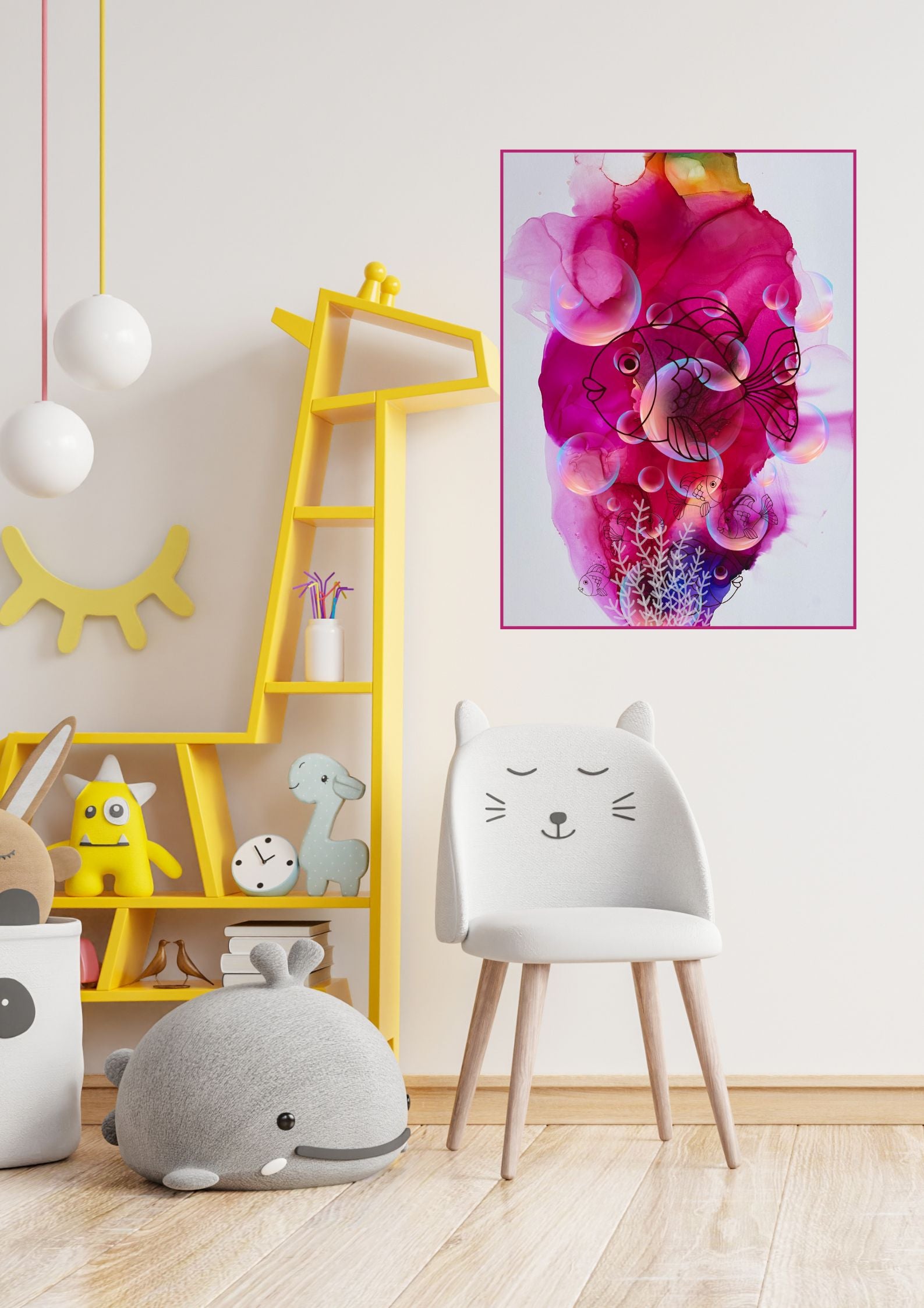 Der Fisch ist das perfekte Bild für das Kinderzimmer, denn er strahlt Ruhe aus, und die dezente Farbgebung in Rosa und Blau unterstreicht diese Ruhe.