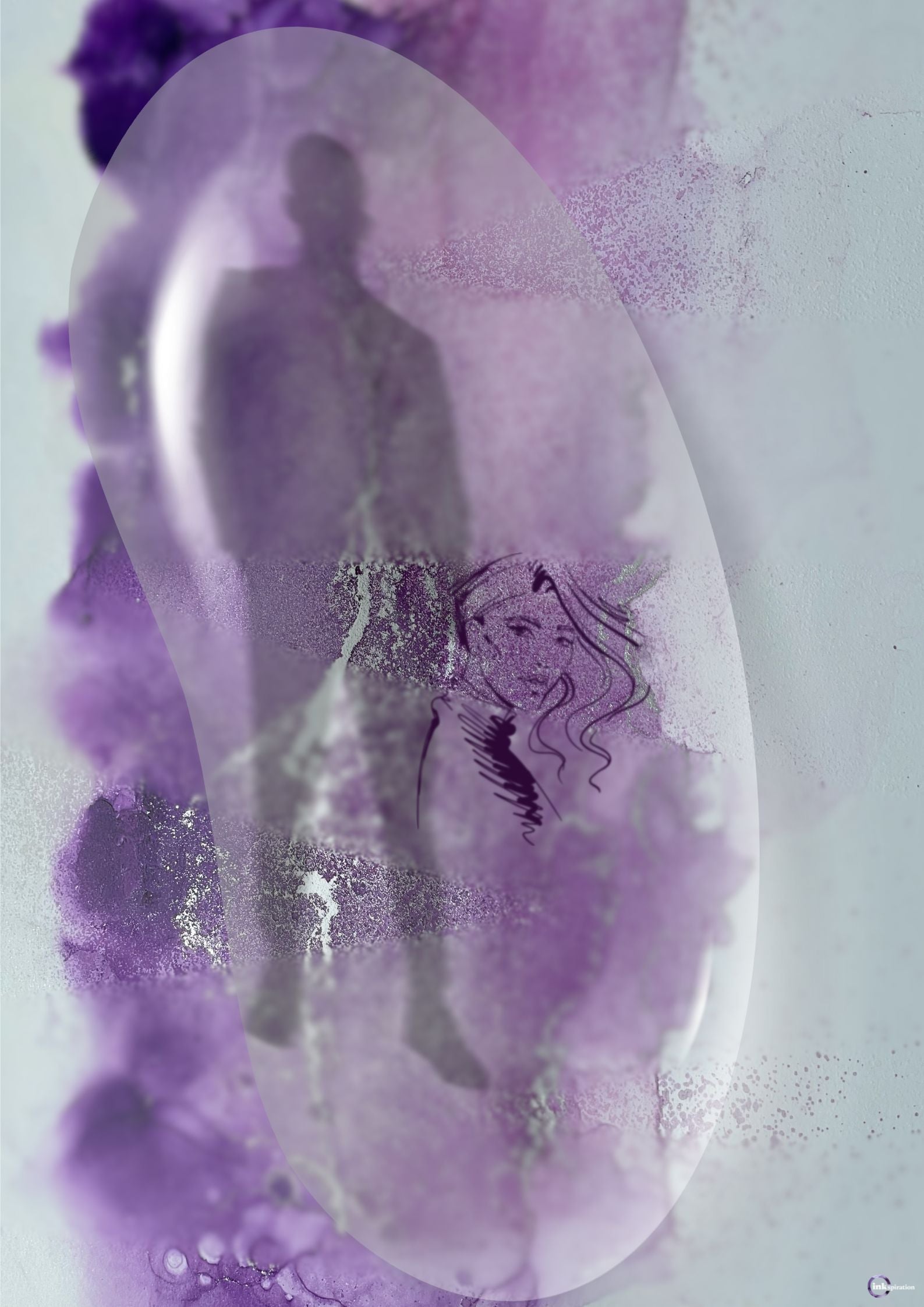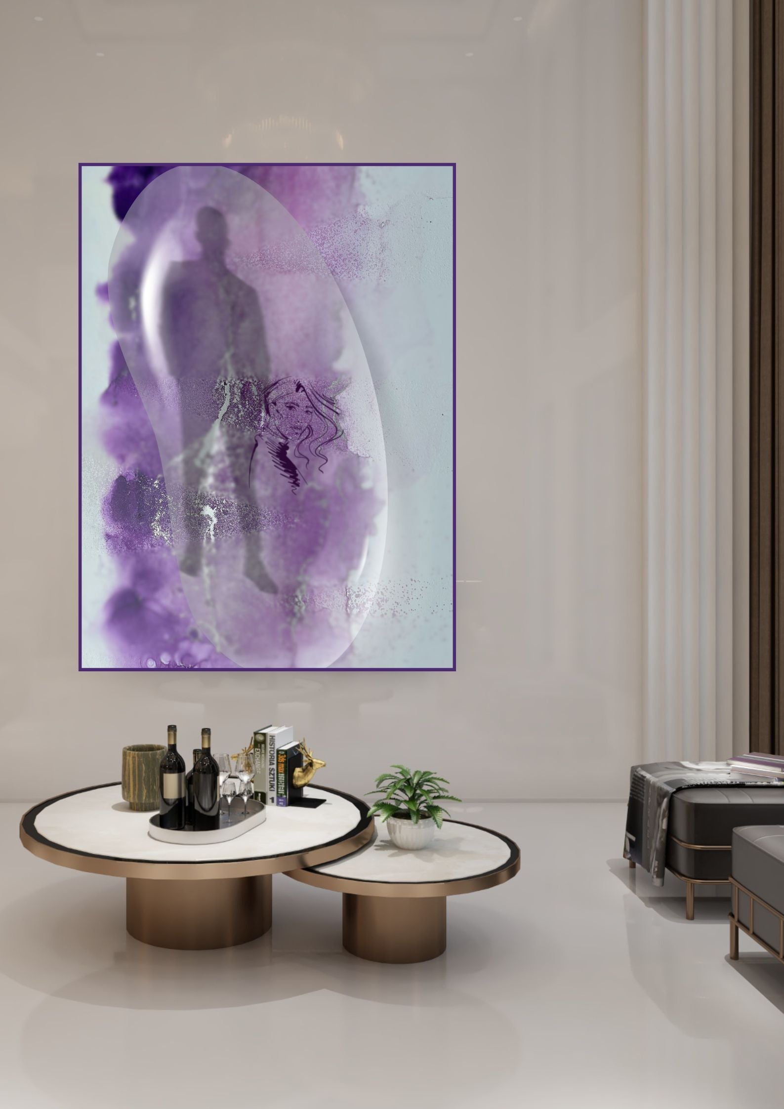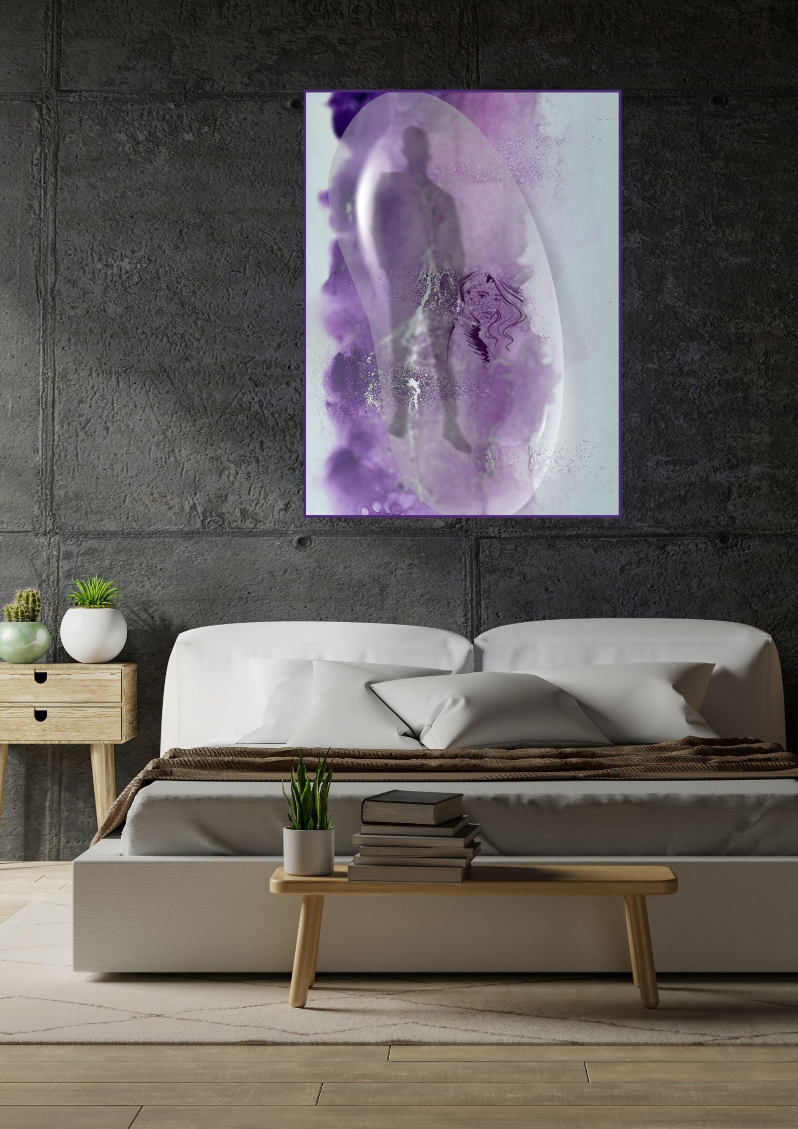 Hier haben wir ein echt besonderes Poster. Es ist in tollen violetten Tönen gestaltet, die Wärme und Vertrauen ausstrahlen. Auf dem Poster ist ein Mann als Schattenbild und eine Frau zu sehen.