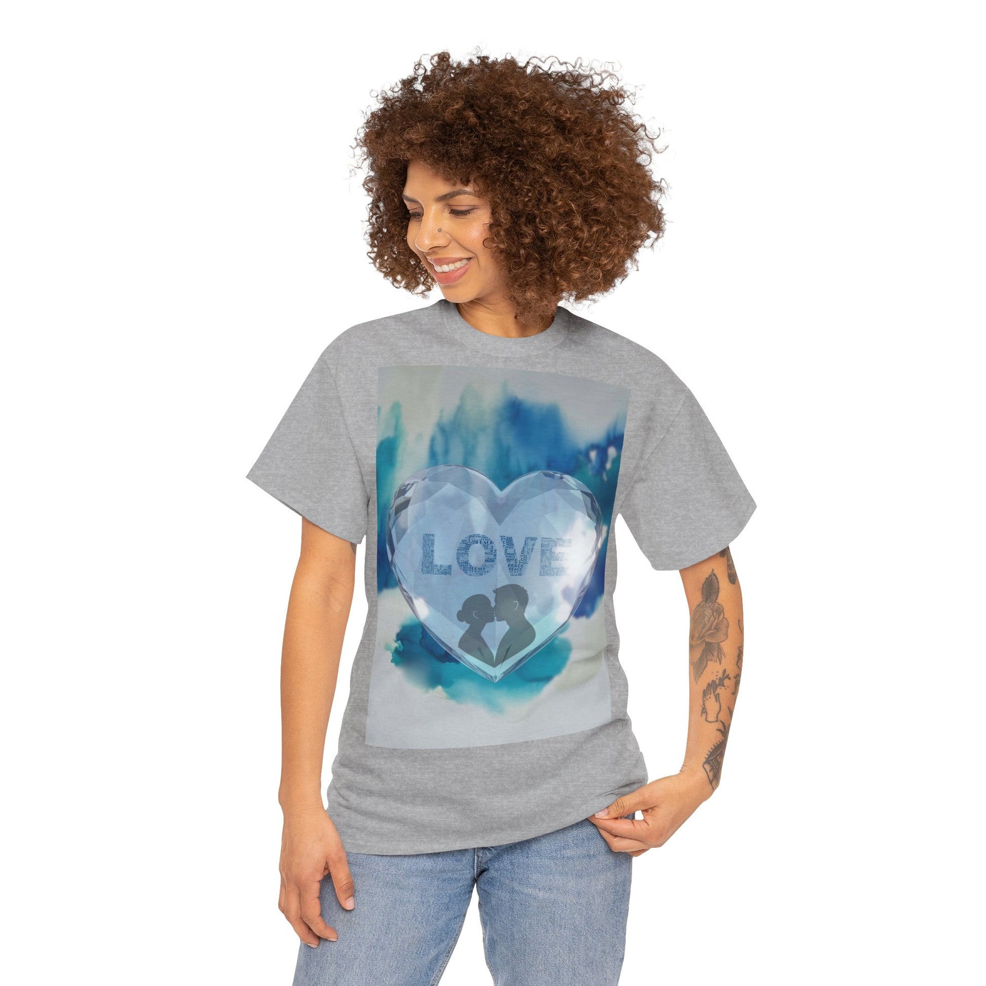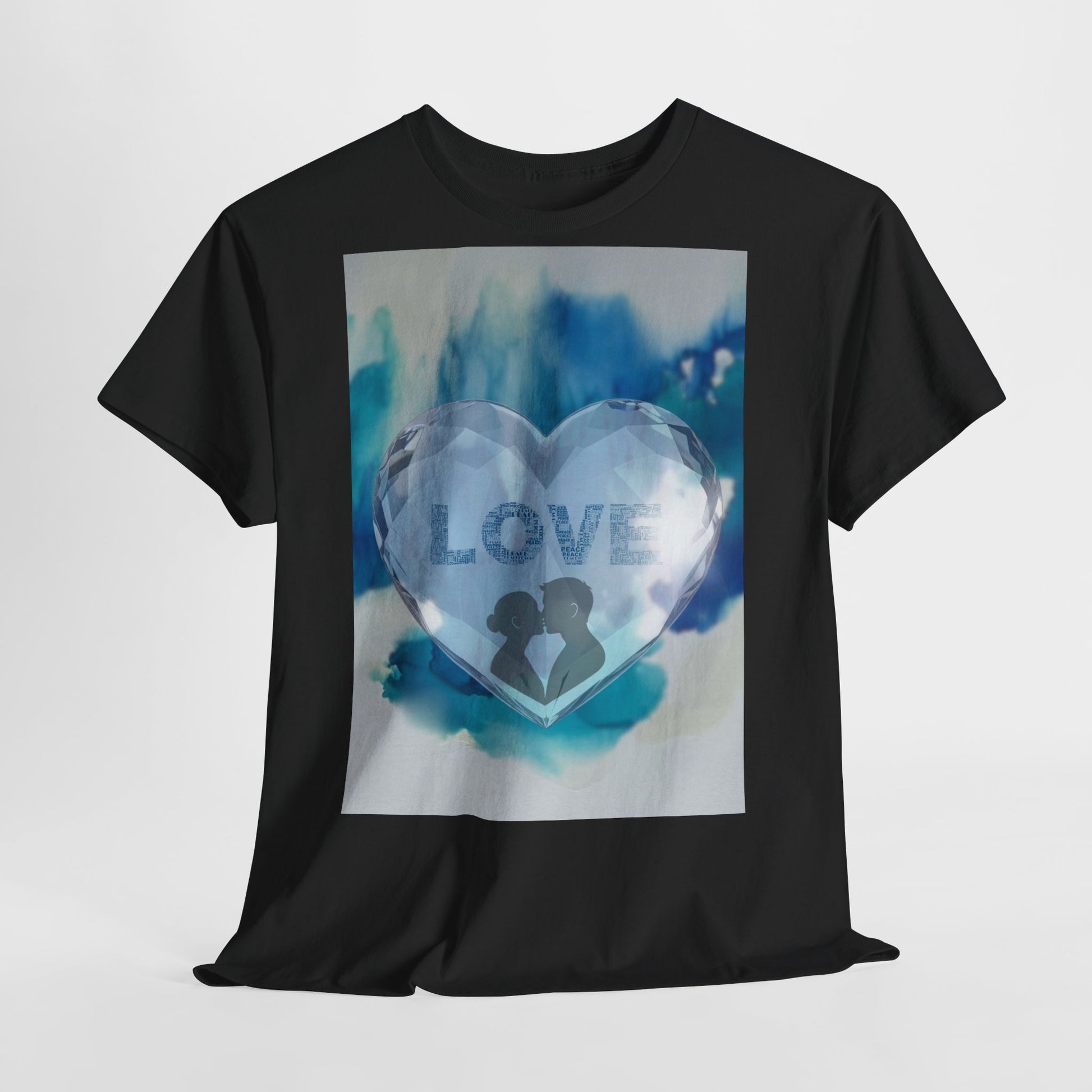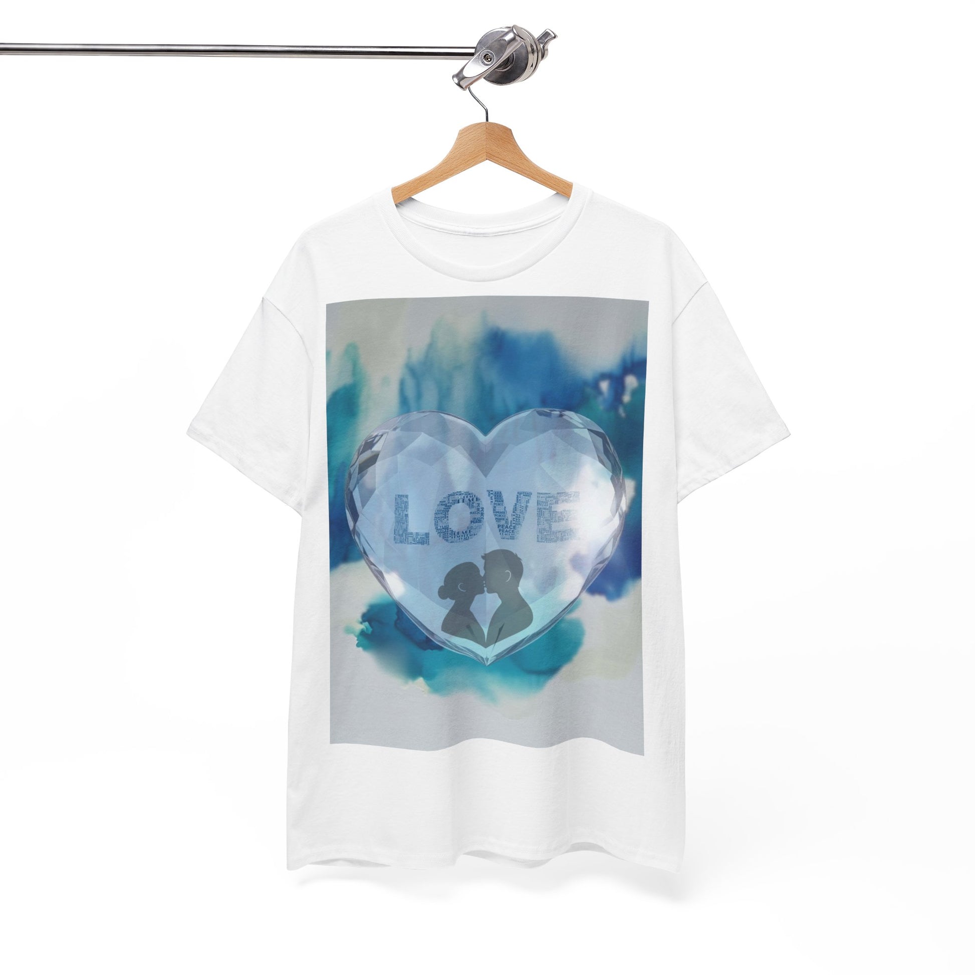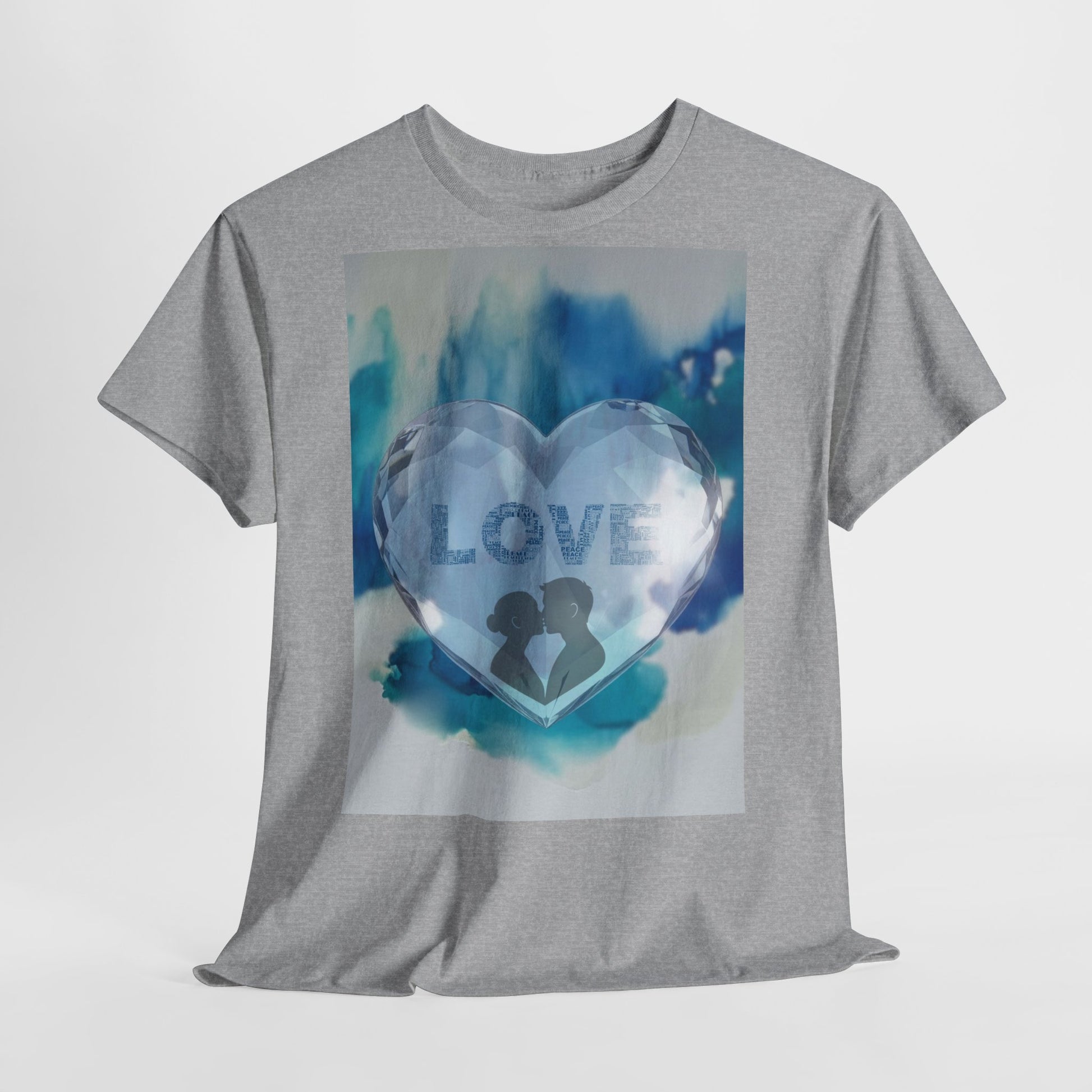 Love Heart Silhouette T-Shirt — Blue Watercolor Romance Tee