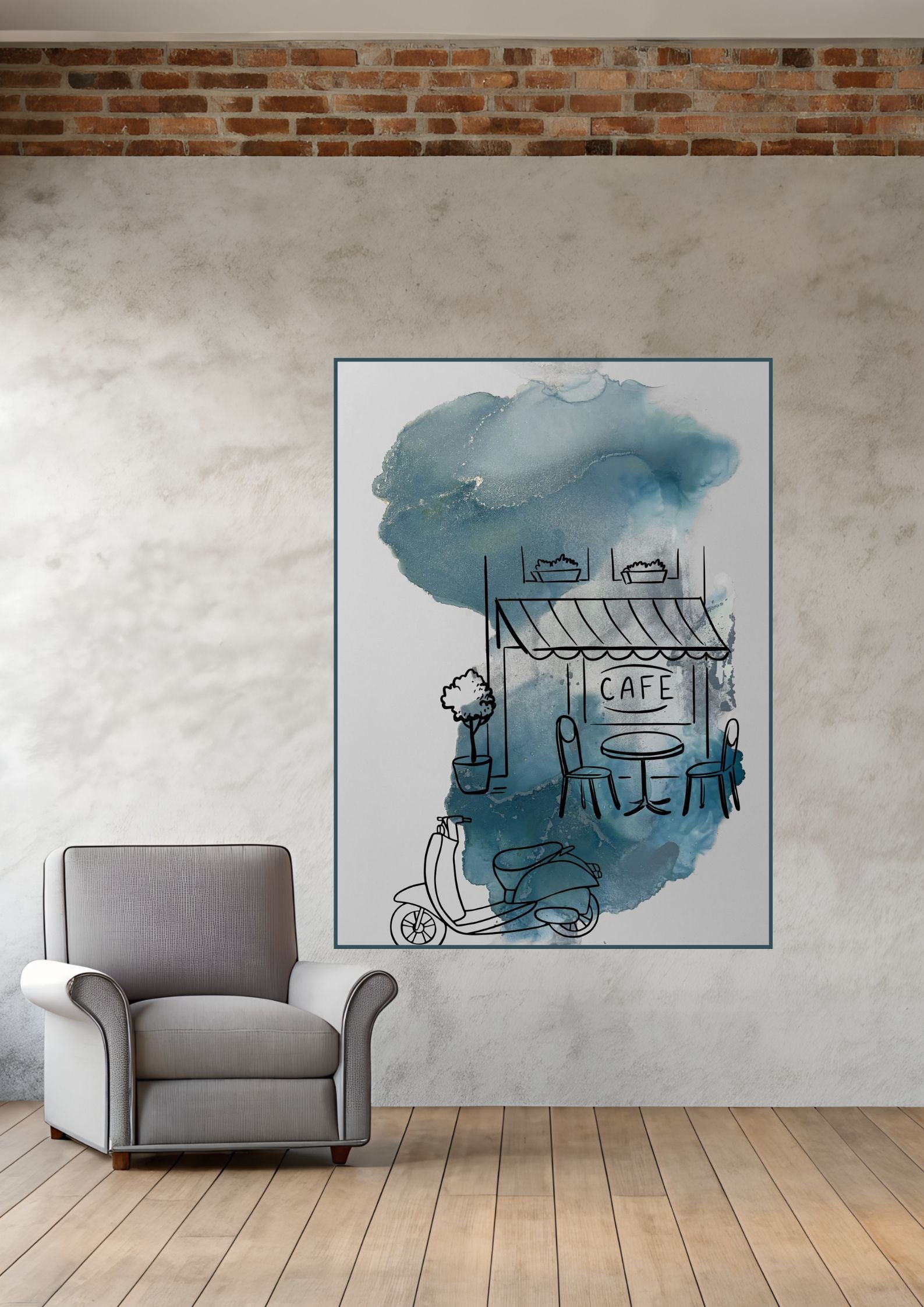 Das Poster verbreitet mit seinem Blauton eine Atmosphäre der Ruhe und Gemütlichkeit.