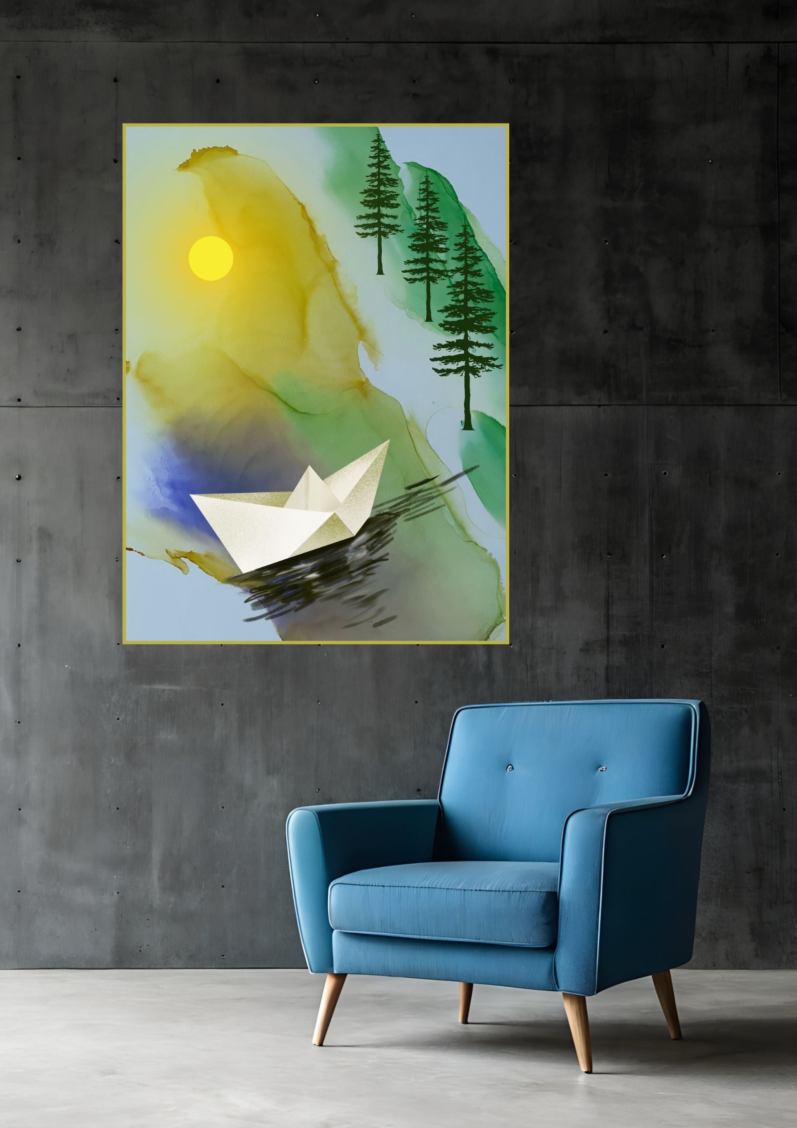 Das Schiff auf dem Poster symbolisiert Freiheit und Abenteuer. Dieses Gefühl wird durch die Farben Grün und Gelb unterstrichen. Mit diesem Poster wird dein Wohnraum zur Oase.